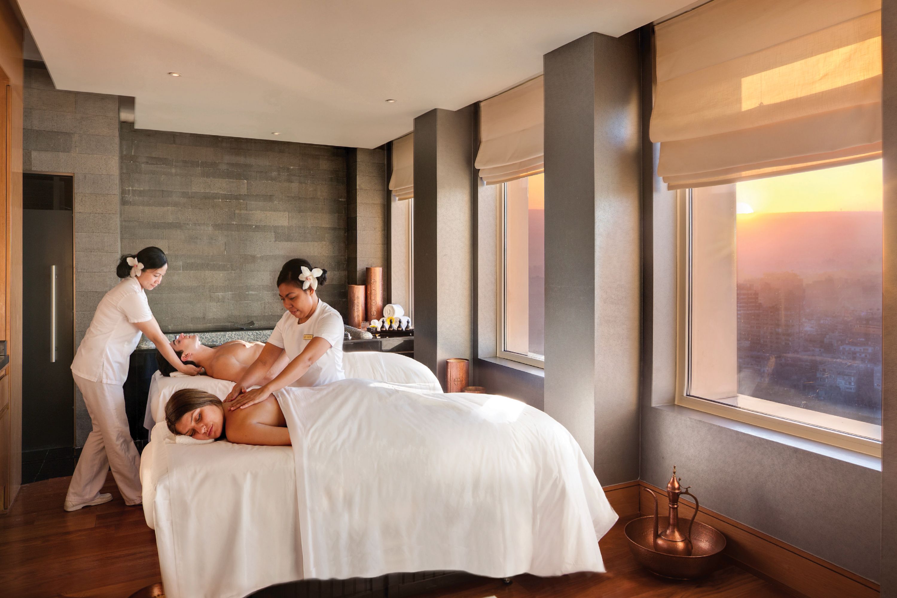 في فيرمونت نايل سيتي (Fairmont Nile City) في القاهرة، توفر علاجات المنتجع الصحي لدينا إحساساً لا مثيل له من الرفاهية النفسية والجسدية، وتكمل بشكل مثالي إقامتك على طول نهر النيل المهيب.