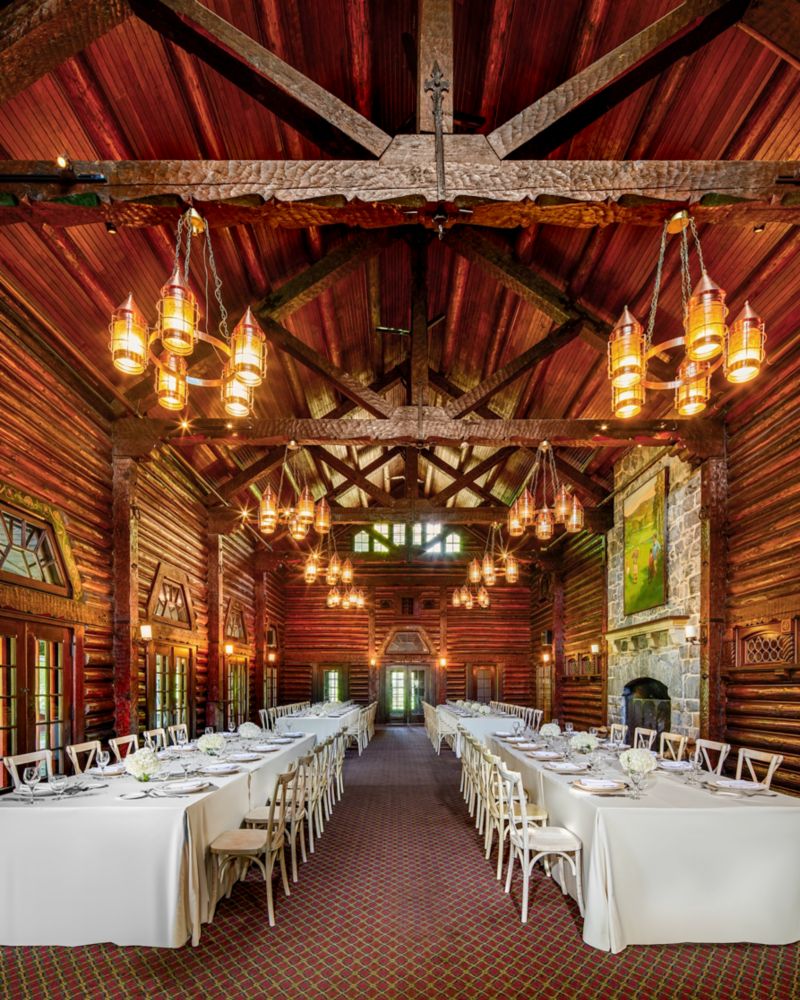 Say your vows under a riverside gazebo with a gentle summer breeze and the sound of birdsong. Or ride on a horse-drawn sleigh through the frosty winter woods to the grand entrance. Dance and toast your happiness by the roaring fire in our magnificent log-cabin lobby, the site of nearly a hundred years of storied history and milestone moments.
