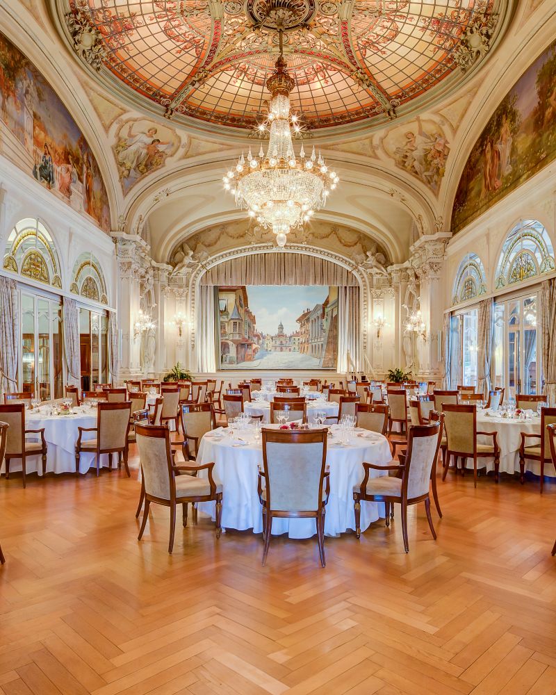 This stunning Belle Époque room was once the hotel’s entertainment venue, showcasing live band performances. At 242 m², it features a grand chandelier and a theater stage for orchestras or events. The Salle des Fêtes accommodates up to 180 guests for dining and 400 for receptions, making it perfect for any occasion.