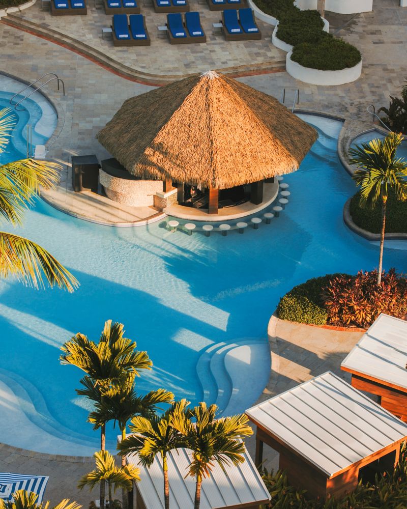 Lounge at our poolside Swim-Up Bar, where the sun-drenched Caribbean sets the perfect backdrop. Savor handcrafted cocktails inspired by the islands while immersing yourself in a tropical oasis. Every sip is an invitation to relax, celebrate, and take in the stunning views of our sparkling pools, lush island landscape, and award-winning beach. Here, every moment is effortlessly extraordinary.