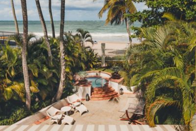 • Four-night stay in Casa del Mar – Tropical Villa, with private terrace, patio, living room, beach view, and hot tub