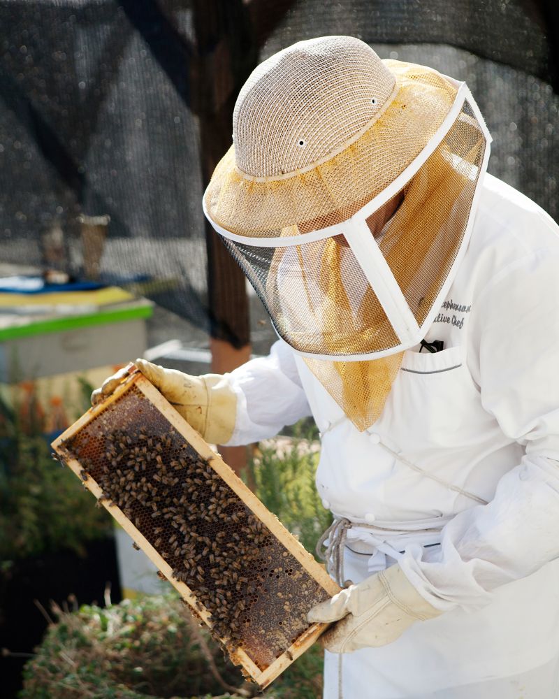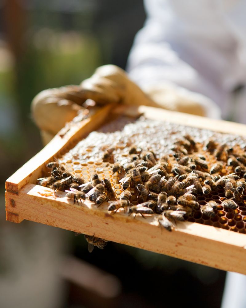 Our comprehensive bee program encourages new bee habitas, crucial for the long-term survial of the honeybee species, who are the most effective pollinators on the planet. Our bees produce a natural raw honey, which we use in our restaurants and bars.