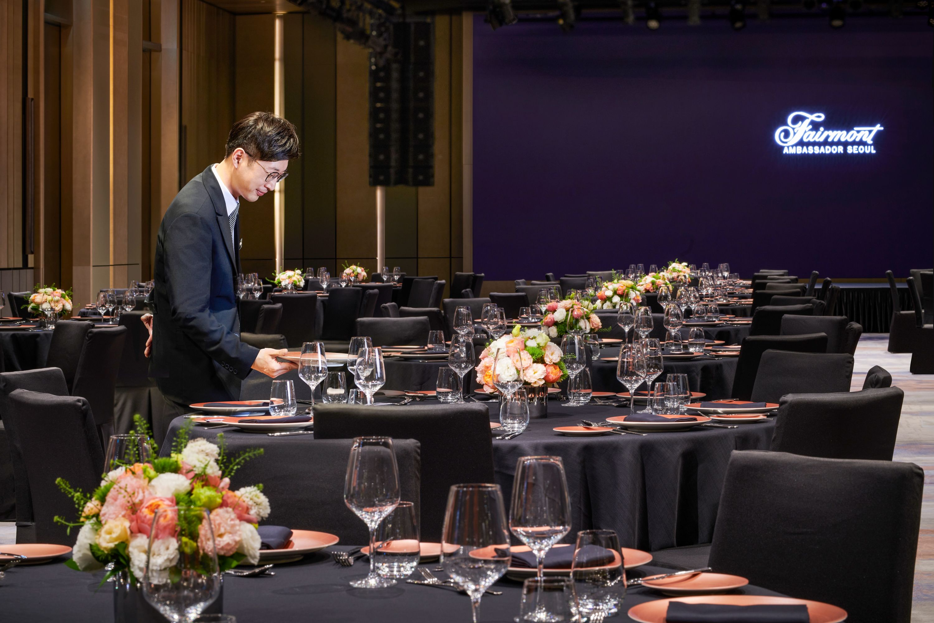At Fairmont Ambassador Seoul, your wedding becomes a masterpiece of artful elegance. Inspired by the beauty of an art gallery, our Grand Ballroom dazzles with chandeliers and floral accents, perfect for larger weddings. For intimate celebrations, Gallery 7 offers a refined setting. With stunning views, natural light, and impeccable service, we create an unforgettable experience for your special day.