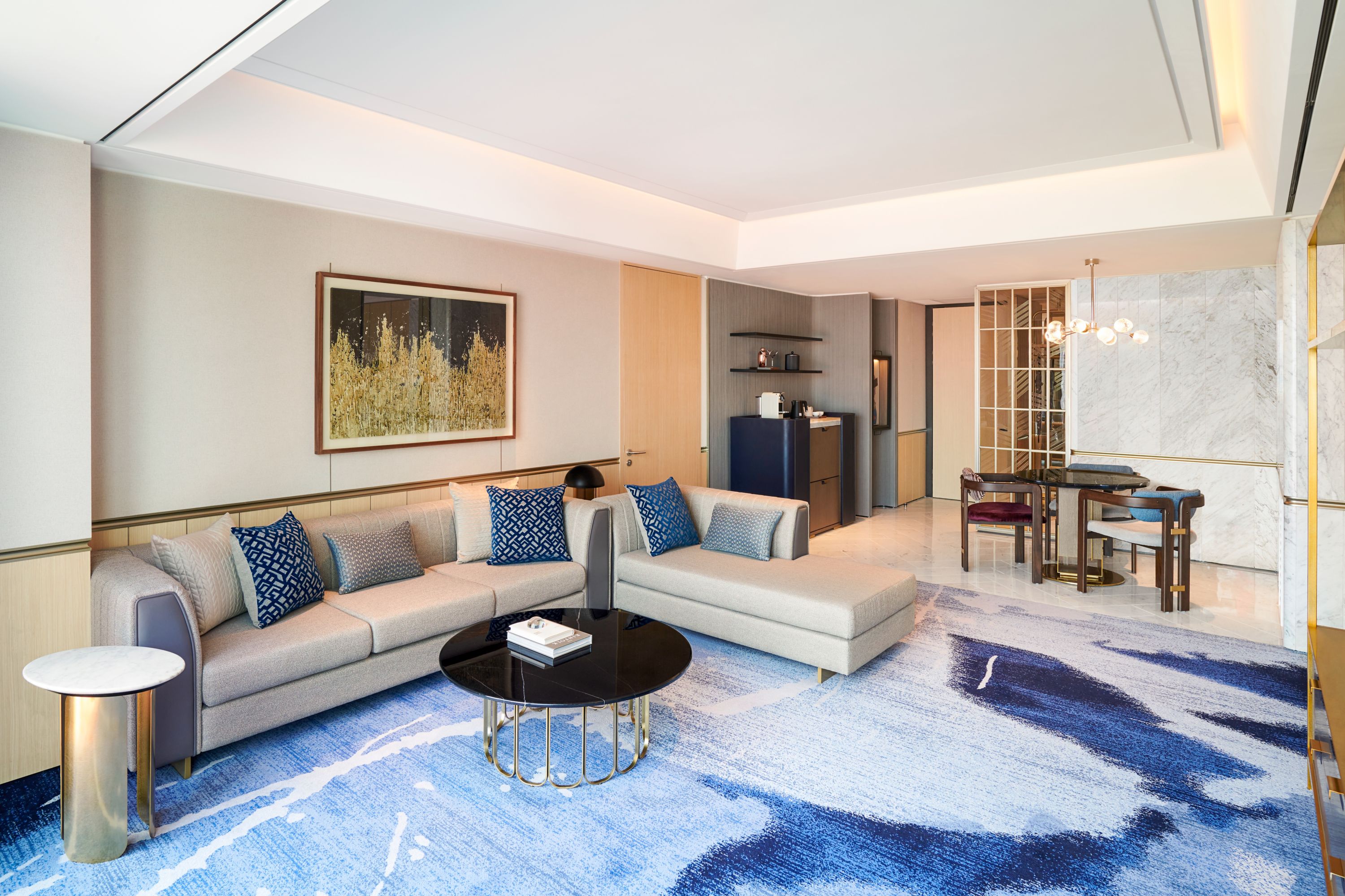 Premier suite comprising two bedrooms, two bathrooms, and a living room with a sofa and three-seat dining table. Access to Gold Lounge, serving daily breakfast, afternoon tea. ※ The room images may differ from the actual assigned view.