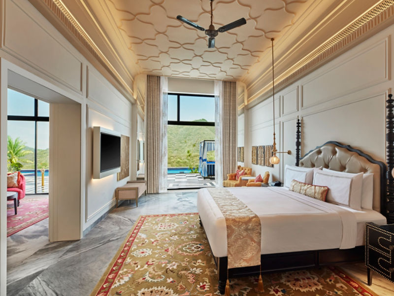 Indulge in a luxurious stay with our exquisite room featuring access to a semi private plunge pool that offers guests a personal space with a sit out. Immerse yourself in luxury and admire breathtaking Aravalli views.