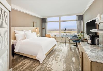 Registered guests enjoy complimentary access to the Health Club, overlooking the U.S. Departures terminal. Facilities include a Fitness Centre with a lululemon Studio Mirror, Peloton bike, elliptical trainers, free weights, multi-gym, rowing machine, stair climbers, stationary bikes, and treadmills. The Club also features an indoor pool, whirlpool, children’s wading pool, and separate men’s and women’s dry saunas.