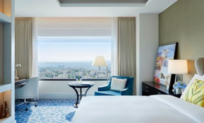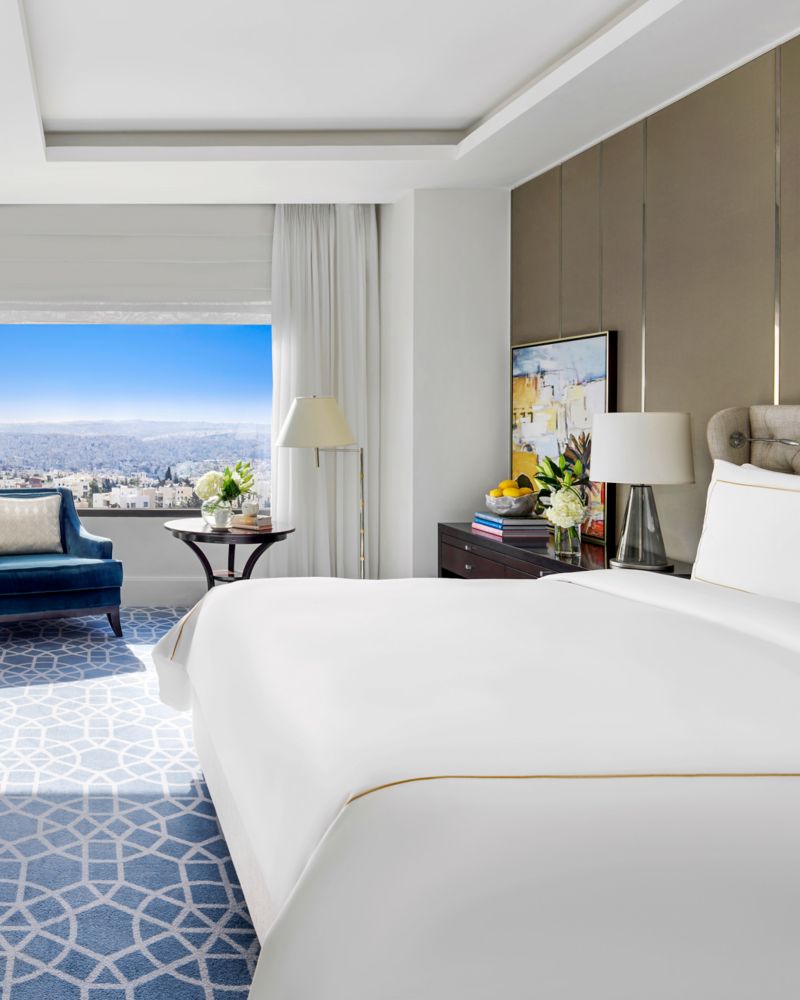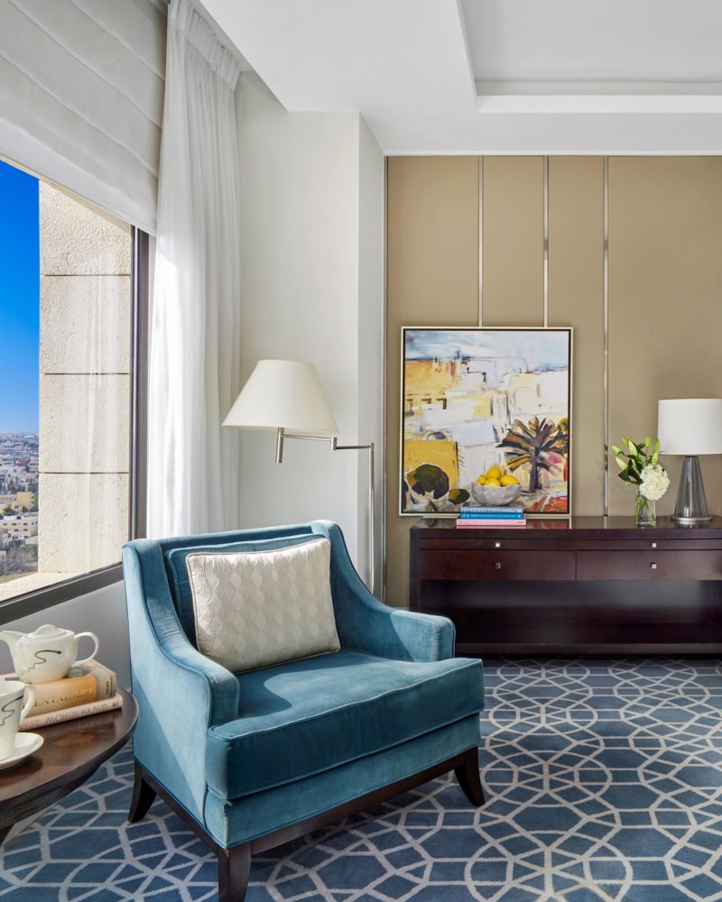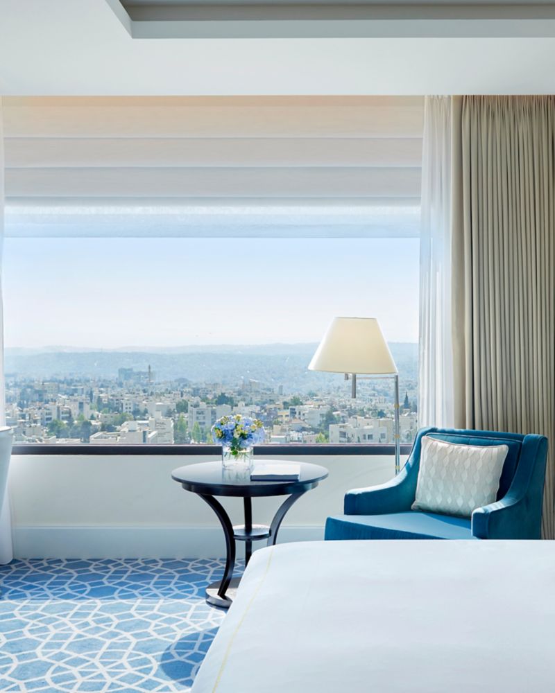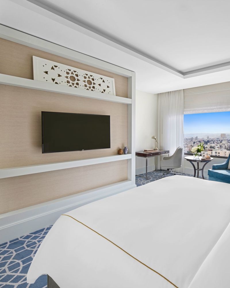 Spacious, modern and well-thought-of design in 45 sqm of tranquil space with massive windows overlooking Amman. Contemporary furnishing with comfortable beds, premium amenities and a refreshment centre for a luxurious experience.