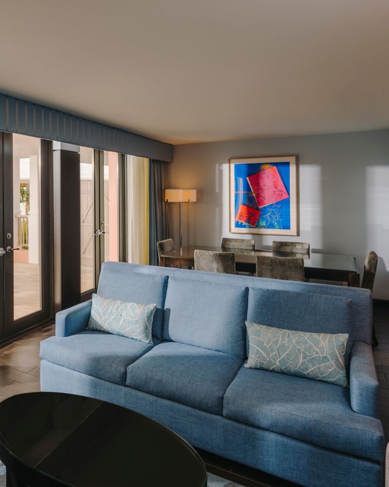 Im Erdgeschoss des Poinciana-Flügels finden Sie moderne Suiten mit Privatterrasse, separatem Wohnbereich und übergroßen Bädern mit Dusche und Badewanne.