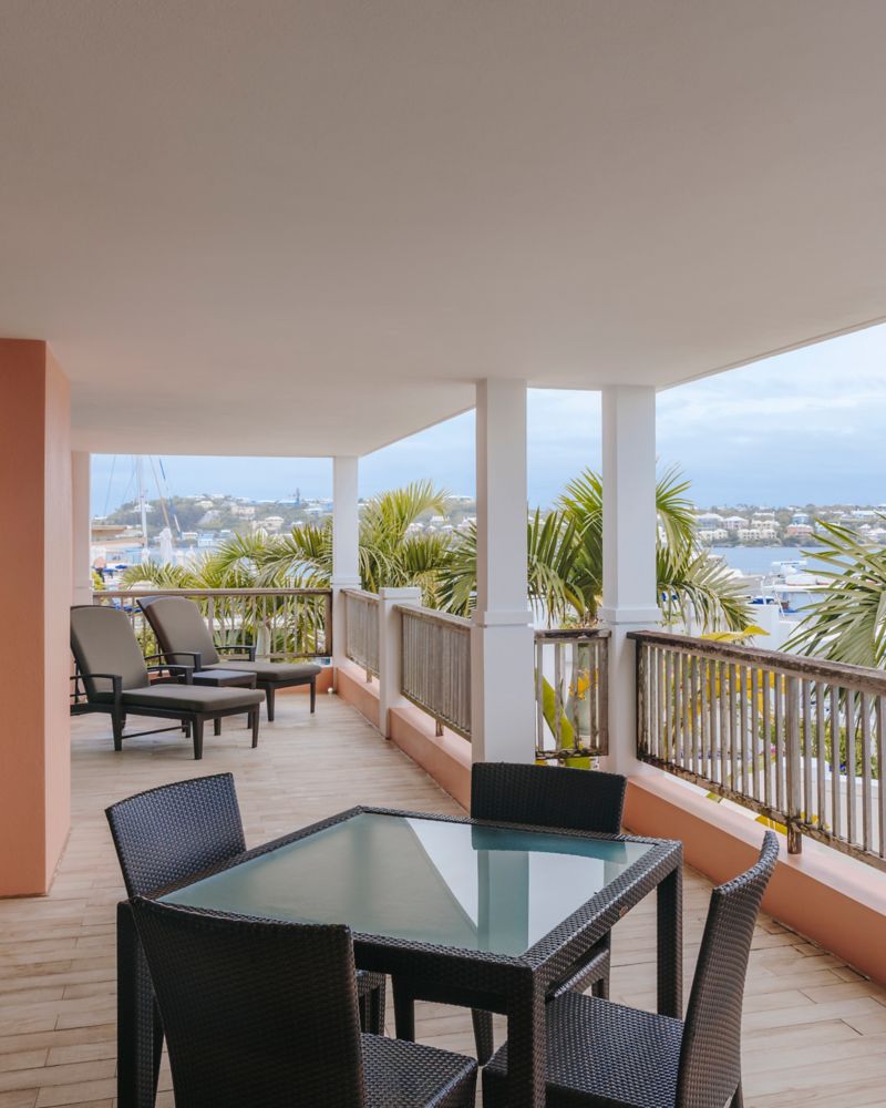 Renovierte übergroße Suite mit übergroßer Terrasse mit Blick auf den Hafen. Im ruhigen Bermudiana-Flügel. Exklusiver Zugang zur Fairmont Gold Lounge.