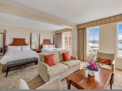 Deluxe Zimmer mit 2 Doppelbetten und Blick auf Darling Habour