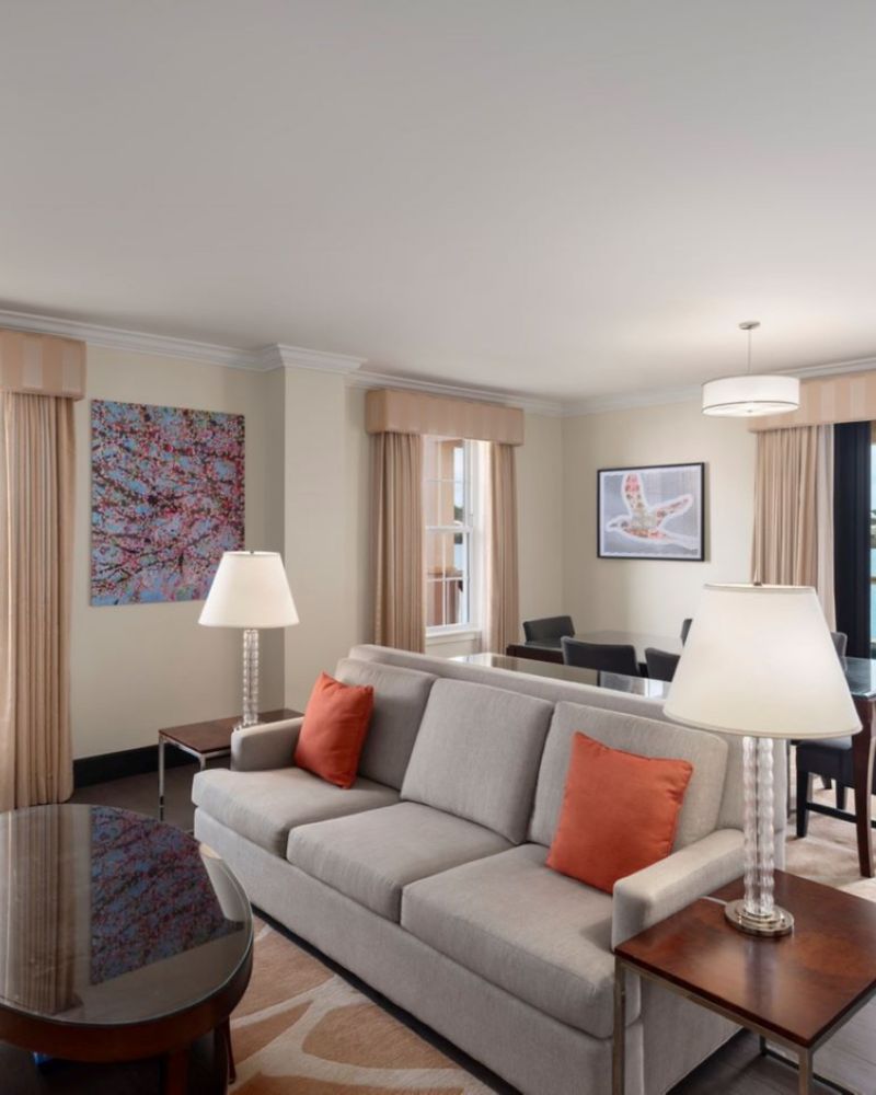 "Suite mit Unterteilung im historischen Hauptgebäude. Sitzbereich mit Schlafsofa. Die Suite umfasst zwei Badezimmer und ist ideal für Langzeitaufenthalte oder Familien, 39 USD Trinkgeld pro Tag, zahlbar beim Check-out."