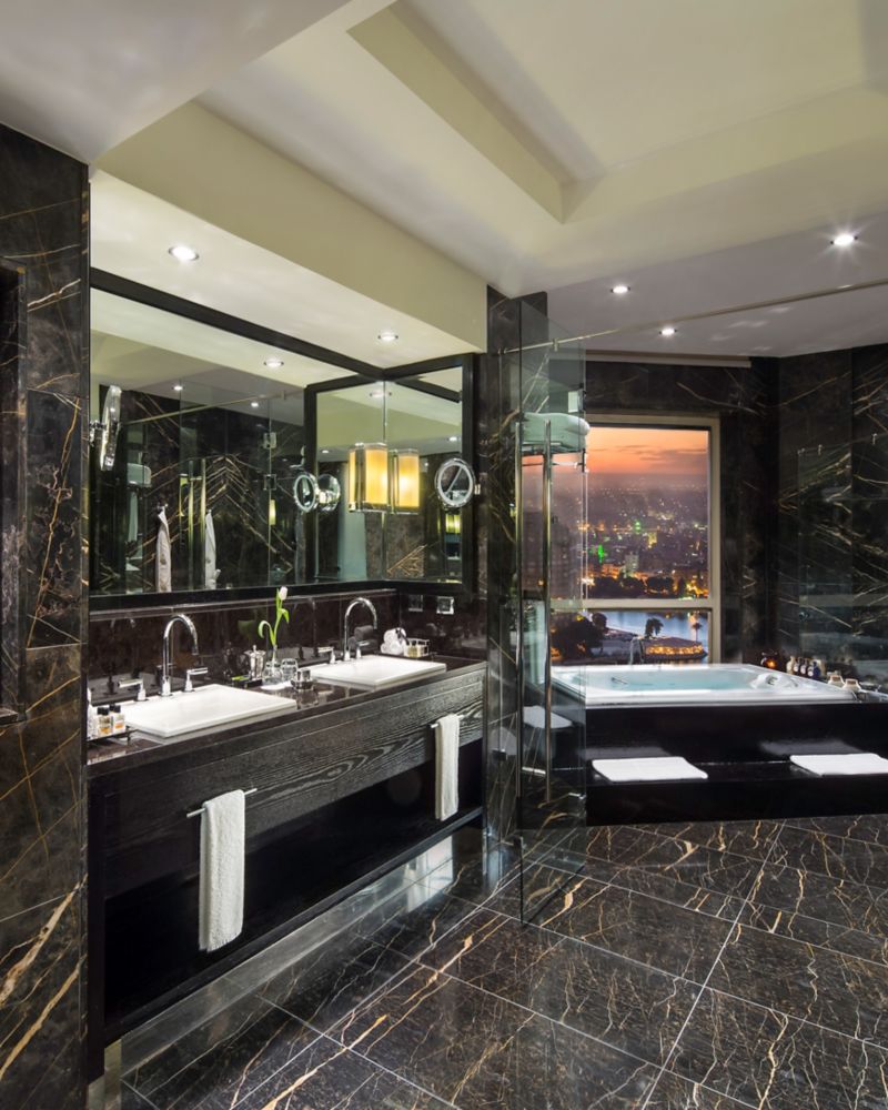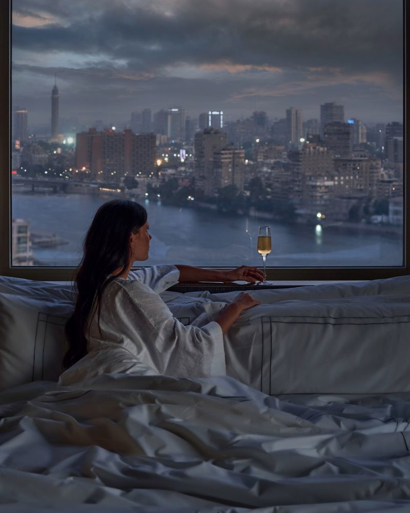 The luxury Signature rooms overlooking the Nile or the city, combine modern decor with timeless elegance, featuring open concept bathrooms with sliding shutters, rain showers and exclusive bathroom amenities.