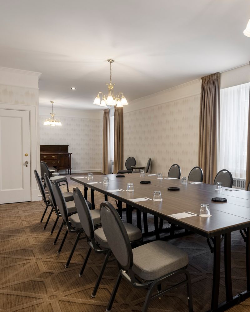 The Birch Room comfortably accommodates up to 20 guests in a boardroom setup or 24 guests with round tables. Filled with natural light, it provides a bright and welcoming space ideal for meetings, workshops, or private events.