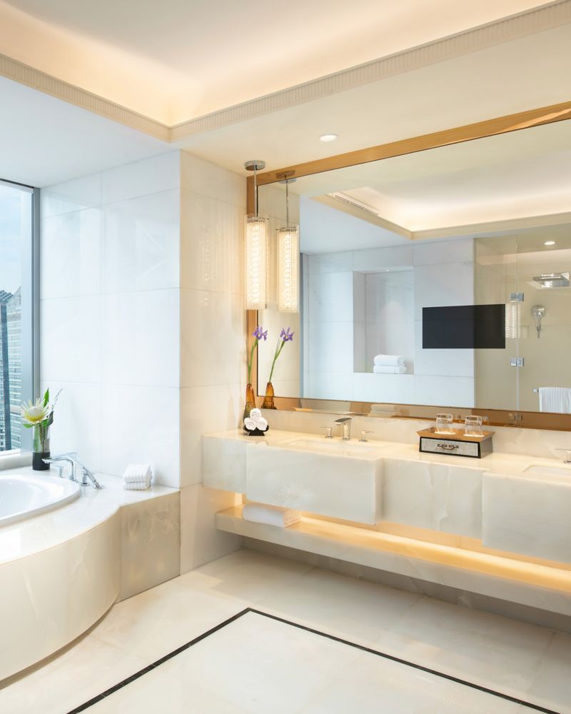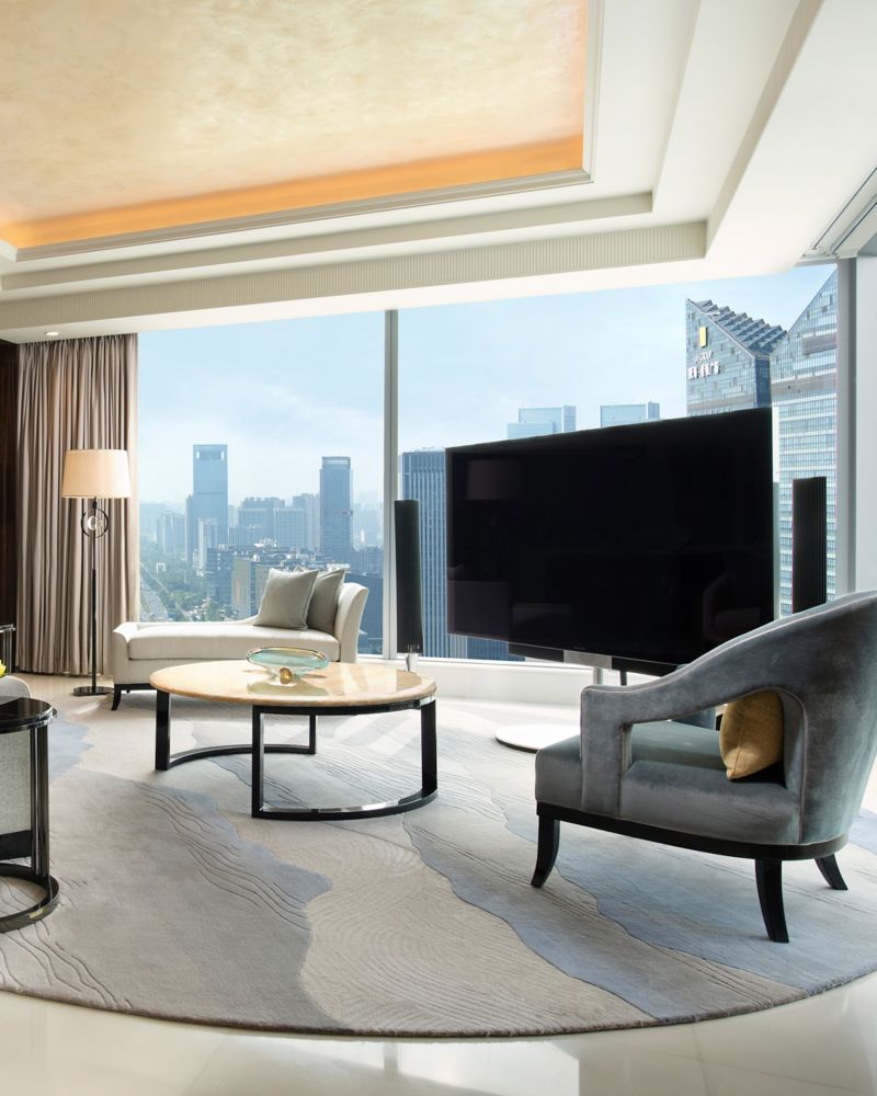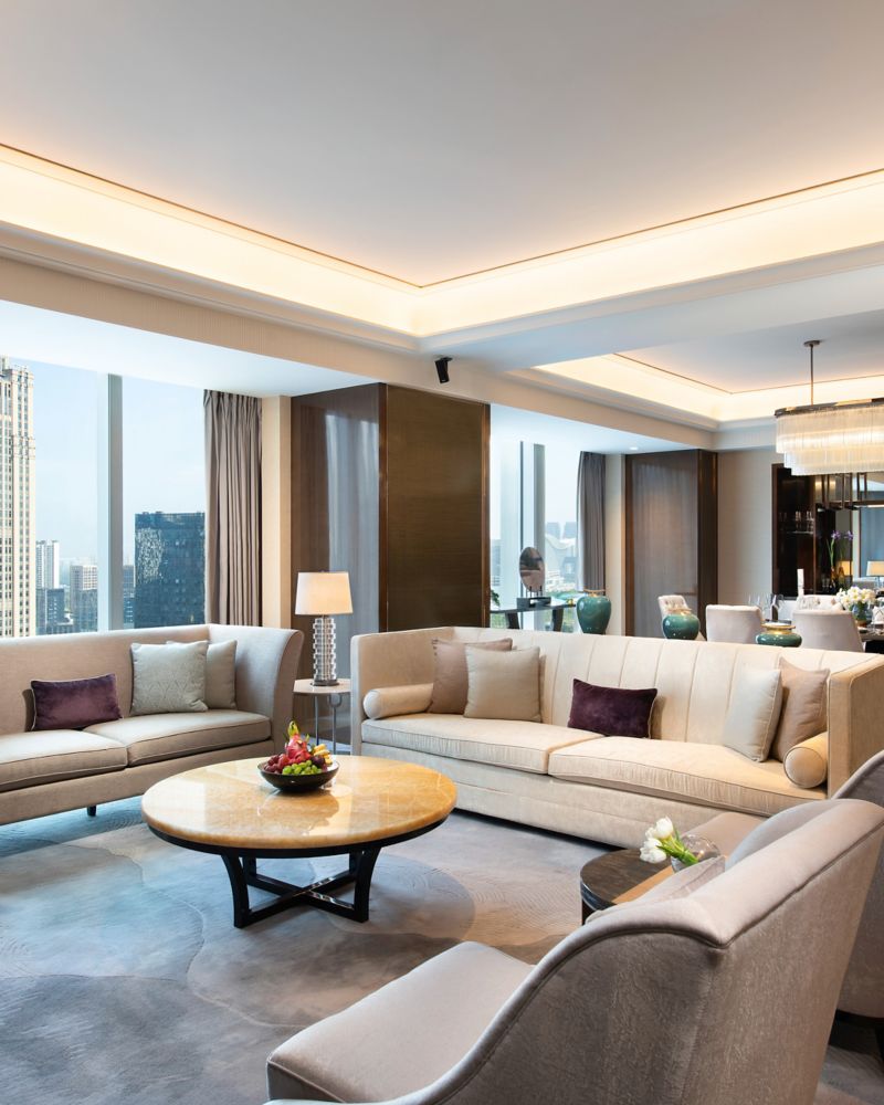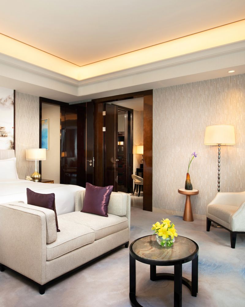 The guest room is spacious and elegant. Located on the 29th and 30th floors, the room area is 157 m², equipped with a 2m*2m king bed. With separate dining area, whirlpool tub. Each room features a chic walk-in closet, touch panel controlled toilet and high-tech amenities.Including Fairmont Gold access .