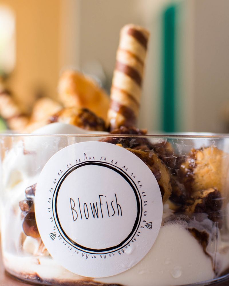 Blowfish sundaes. Each sundae features indulgent, inventive combinations of rich flavors and textures, from creamy ice cream to unique toppings. Perfectly crafted to satisfy any sweet tooth, Blowfish sundaes offer a playful and unforgettable treat that turns every dessert moment into a special occasion.