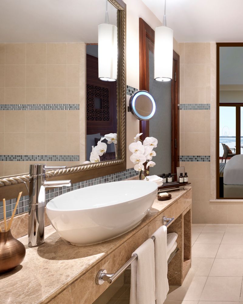 Arabische Noten, Meerschaumfarben, eine elegante Umgebung und ein atemberaubender Blick auf die Dubai Marina-Skyline mit Palmen machen dieses Zimmer zu einem unserer begehrtesten. Genießen Sie den Sonnenuntergang auf Ihrem privaten Balkon.