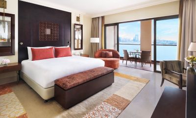 This spacious, Arabian-inspired, family heritage room is the ideal retreat with its warm colors, elegant touches, and two private balconies overlooking the Palm residences.
