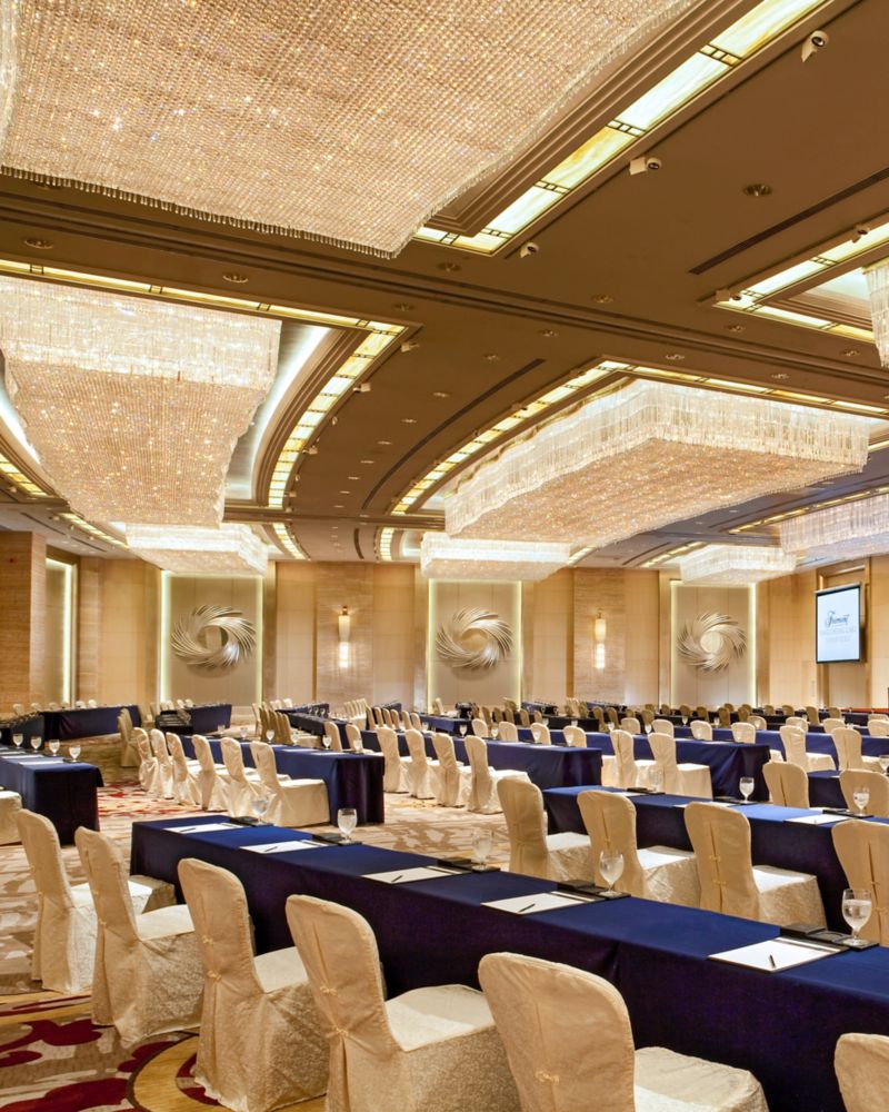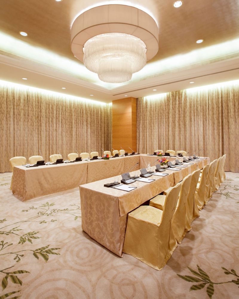 Our Grand Ballroom Kun Yun Hall is a generous 1,132 square metres with 6.8 meters ceiling height. It can accommodate up to 1,000 guests banquet, also can be easily divided into three sections. A lavish 550-square-metre ballroom foyer, with a commanding view of Yangcheng Lake, offers the ideal setting for cocktails or refreshments.