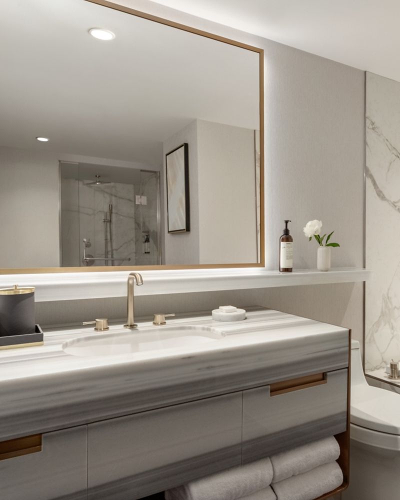 Geräumiges Zimmer mit 41 m² im Mount Temple-Flügel. Rollstuhlgängig. Haltegriffe im Badezimmerbereich. Einstellbarer Make-up-Spiegel, niedriger Türspion, unterfahrbarer Waschtisch. Alarm-Warnlicht.