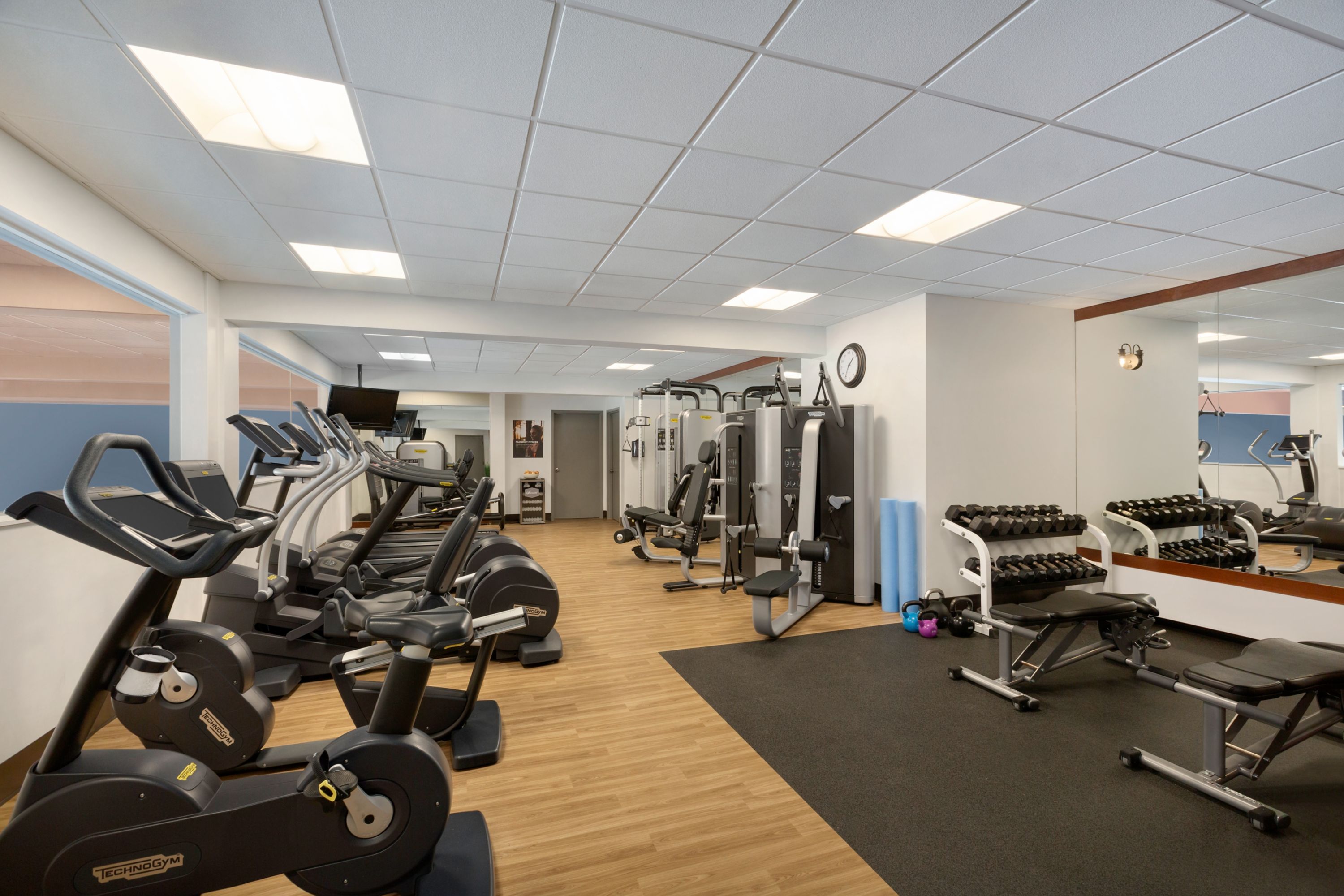 Enjoy a variety of equipment, including elliptical trainers, free weights, stationary bikes, treadmills, weight machines, a universal cable machine, and a stretching room with yoga mats, foam rollers, and balance balls. Find the perfect workout routine and maintain your fitness journey, even while traveling.