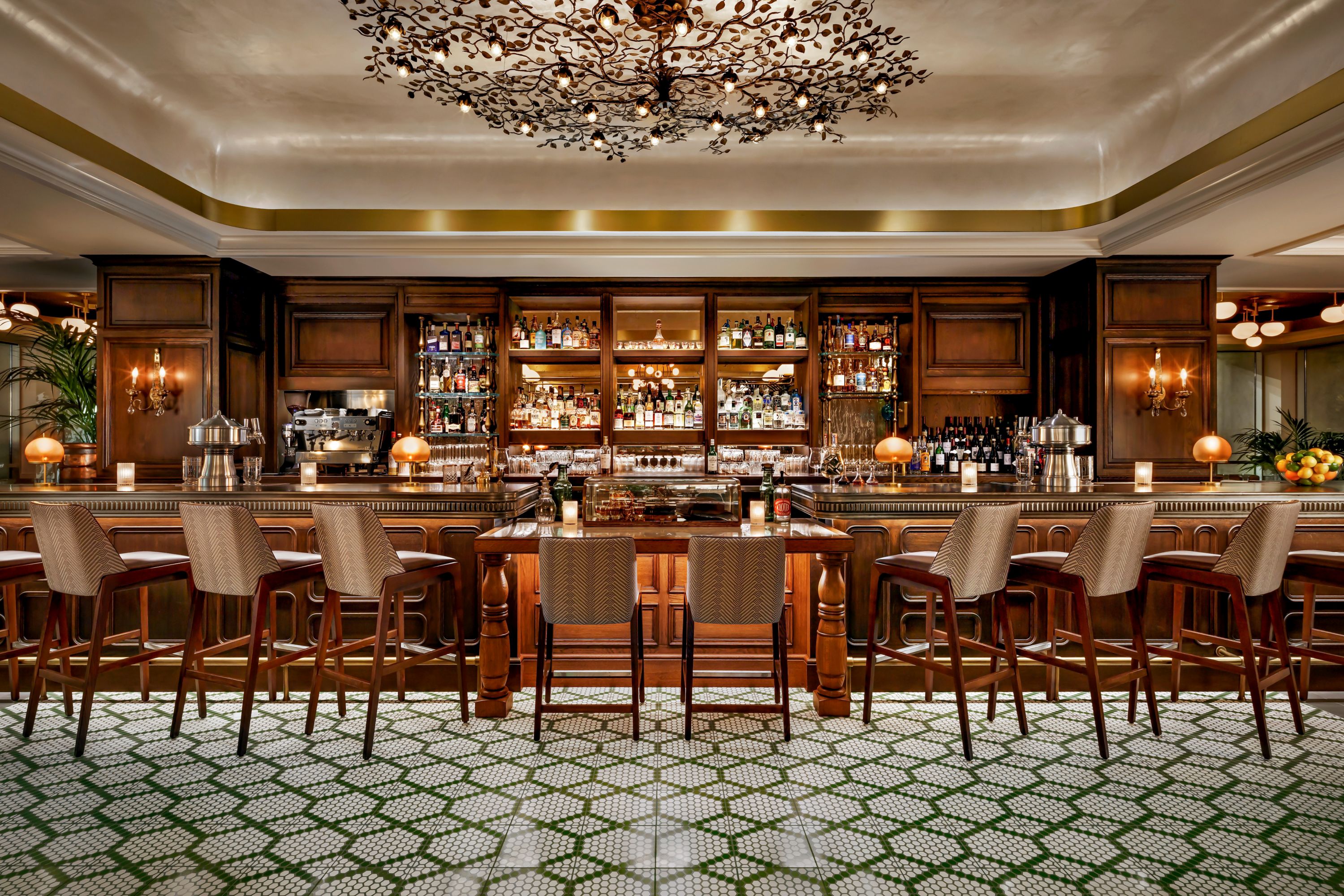 Relax among French antiques, elaborate tilework, and brass accents warmly lit by century-old chandeliers. Dine outdoors and feel transported to a hidden Parisian courtyard complete with magnolia trees, jasmine and lavender plants.