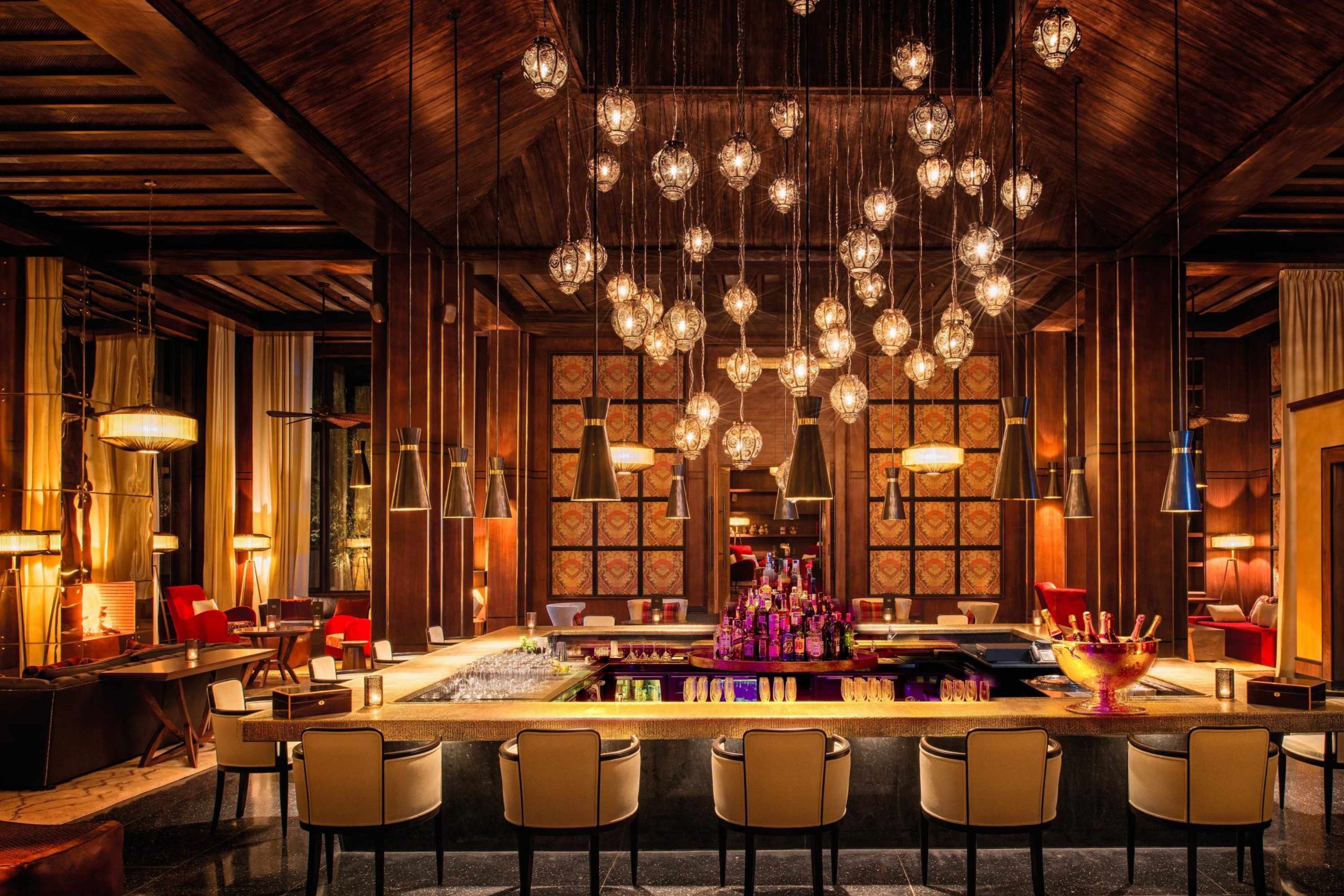 Le Bar bietet eine Jazz-Atmosphäre mit Kamin und einer messingverkleideten Bar, einer Leseecke, schwarzem Granitboden mit großen, hochwertigen Wollteppichen, kostbaren Stoffen, einem Klavier und einem unvergesslichen Charme.