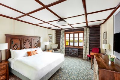 Fairmont Zimmer mit Flussblick und Kingsize-Bett: Mit High-Speed-Internetzugang über WIFI oder Kabel und Schreibtisch. Fairmont Zimmer mit Flussblick liegen meist in der ersten und zweiten Etage und bieten große Fenster mit Blick auf den Ottawa River.
