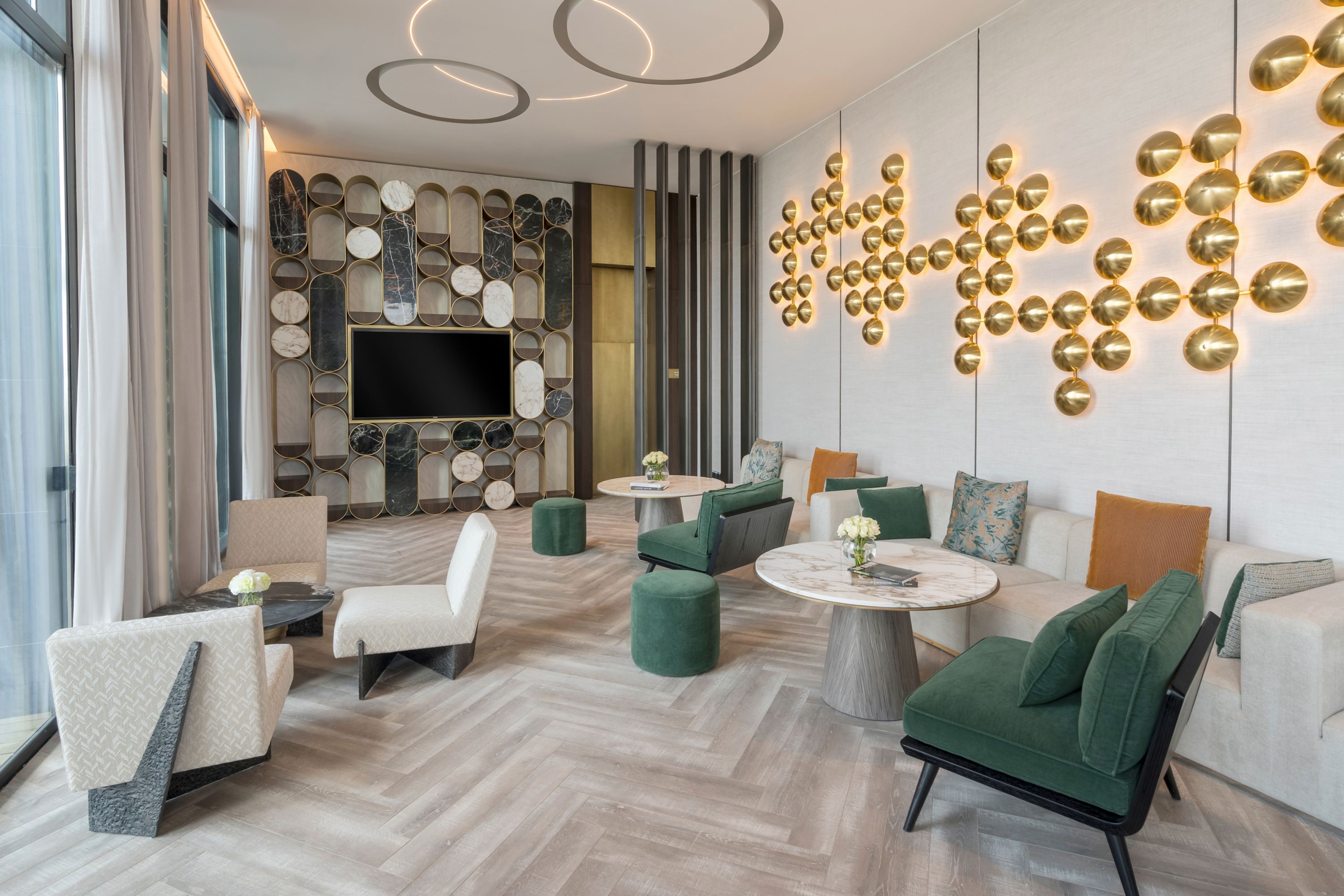 With inviting views, this luxury café is located on Mezzanine floor, overlooking the garden & outdoor restaurants.
