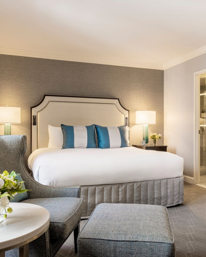 Located on the corner of the building, these rooms offer more space, and bay views as well as an additional window providing more natural light. These rooms feature spacious en-suite marble bathrooms, intimate sitting areas and workspace.