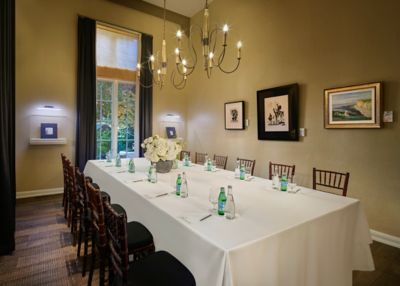 This intimate meeting room is located in the historic main lobby of the Resort. Ideal for an excutive meeting, small office space or hospitality desk.