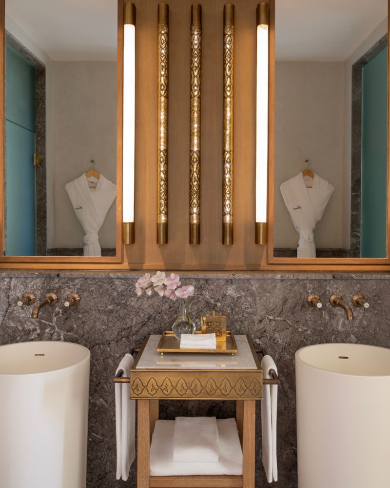 Our top-floor suite offers unrivaled luxury with expansive space, featuring a sophisticated bedroom, elegant living area, and lavish marble bathroom. Enjoy breathtaking panoramic views of Tangier and our palm tree garden.