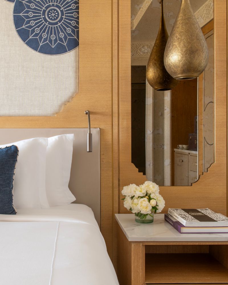 Our top-floor suite offers unmatched intimacy with panoramic Tangier views. Enjoy a sophisticated bedroom, spacious living area, and lavish marble bathroom, blending modern design with Arab-Andalusian artistry.