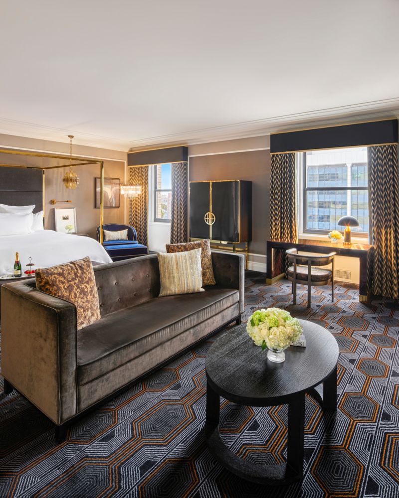 Diese helle, elegante Suite bietet ein modernes Design, inspiriert von der reichen Geschichte des Hotels. Das geräumige Wohnzimmer bietet viel Tageslicht und einen spektakulären Blick auf den Sonnenaufgang und die Skyline. Fairmont Gold Zugriff