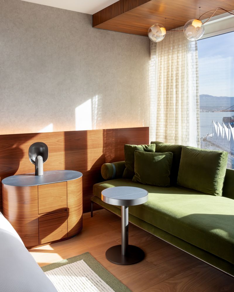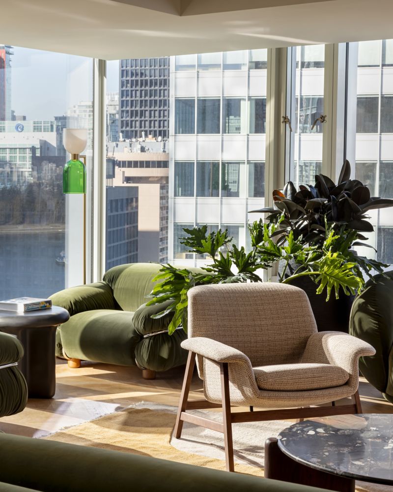 Die frisch renovierten Fairmont Gold-Zimmer sind eine ruhige, von Wohnsuiten inspirierte Oase. Mit beeindruckender Bocci-Hängelampe, B&B Italia Sofa, 75-Zoll-Fernseher, japanischem Dusch-WC, Spa-Dusche und Wanne mit Ablage zur Entspannung.