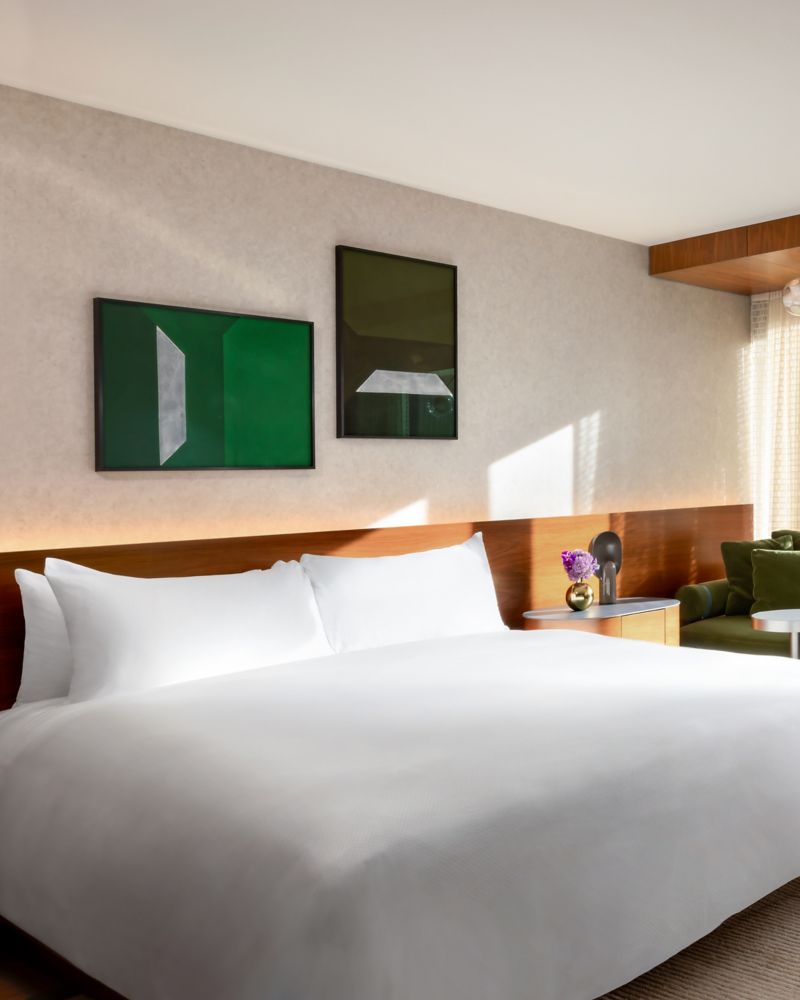 Designed by celebrated artist Douglas Coupland, this expansive suite offers luxury living, complete with private patio and breathtaking views. Features include artist designed vibrant art installations, custom furnishings, 75in TV and soaker tub.