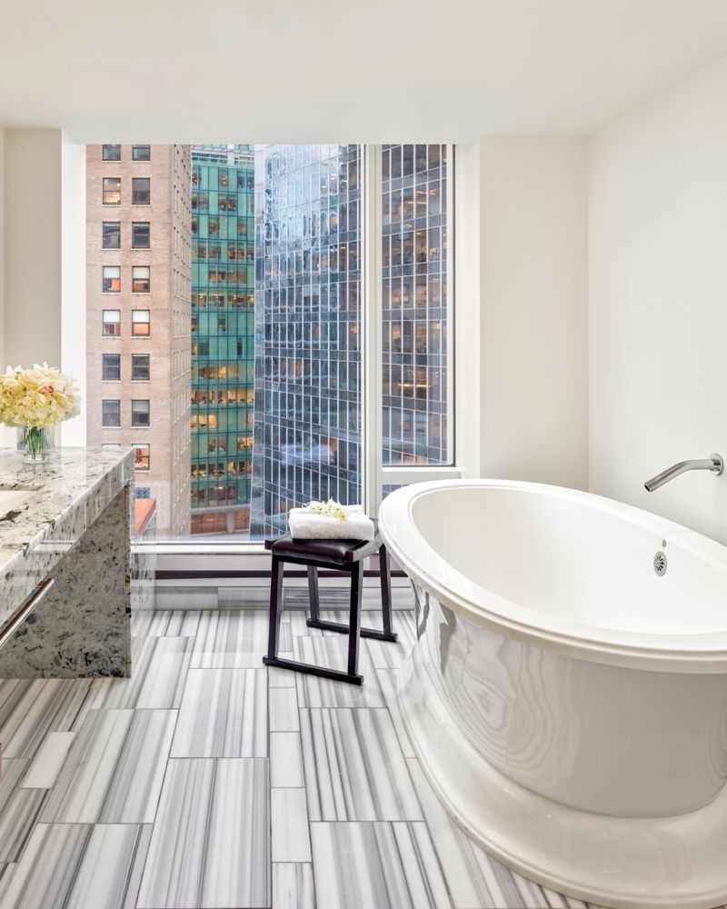 Die Signature Ofuro-Zimmer bieten in ganz Vancouver den besten Blick auf den Hafen und die North Shore Mountains, den Sie in einer japanischen tiefen Ofuro-Whirlpoolwanne in einem großen Marmorbad genießen können. Eine echte urbane Ruheoase.