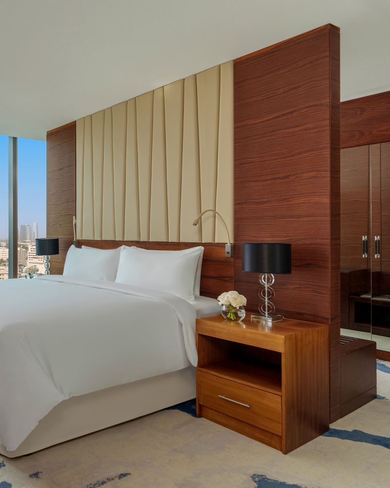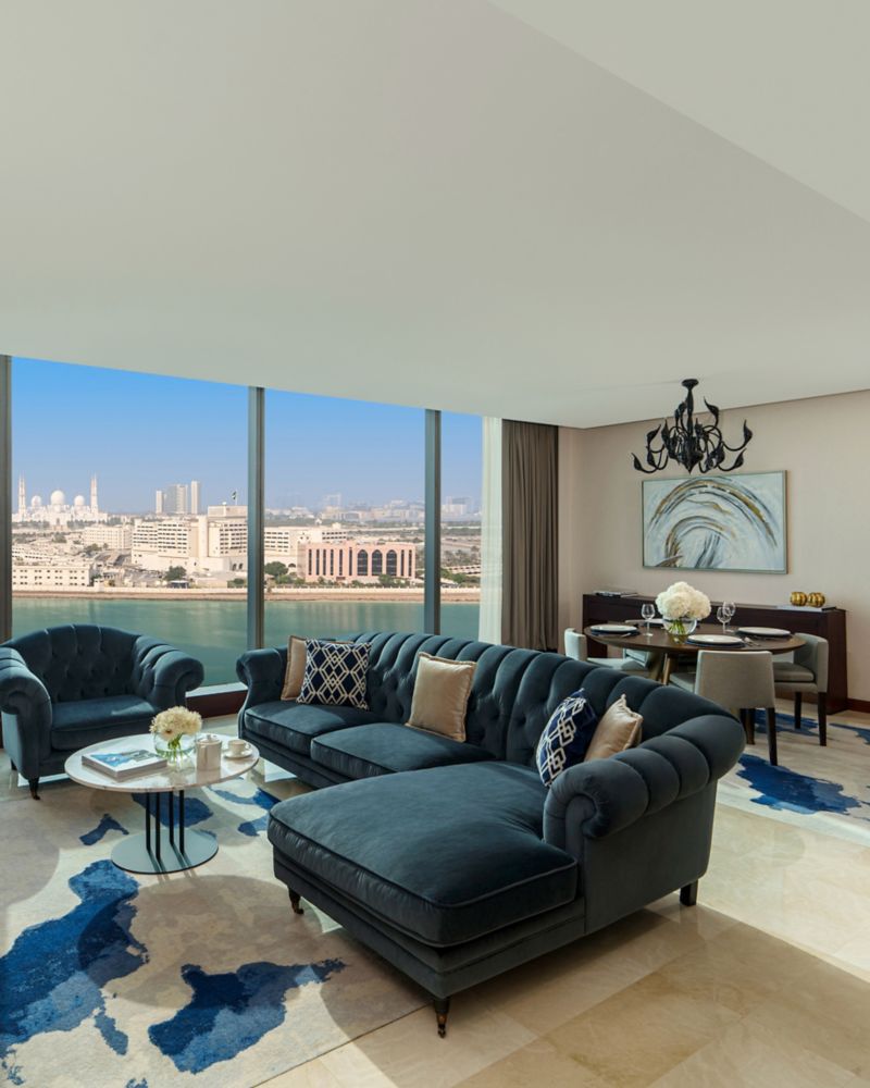 Elegantly appointed one bedroom suites with a separate living space, equipped with an LCD television, a work desk, a luxurious five-piece bathroom and views of Abu Dhabi Creek and Sheikh Zayed Grand Mosque.