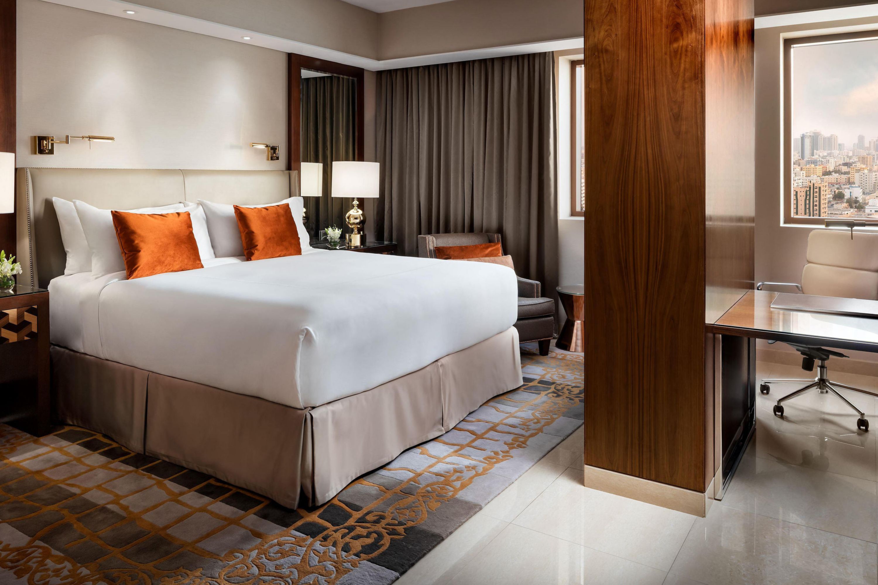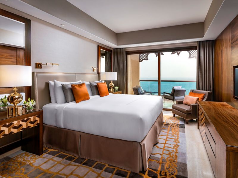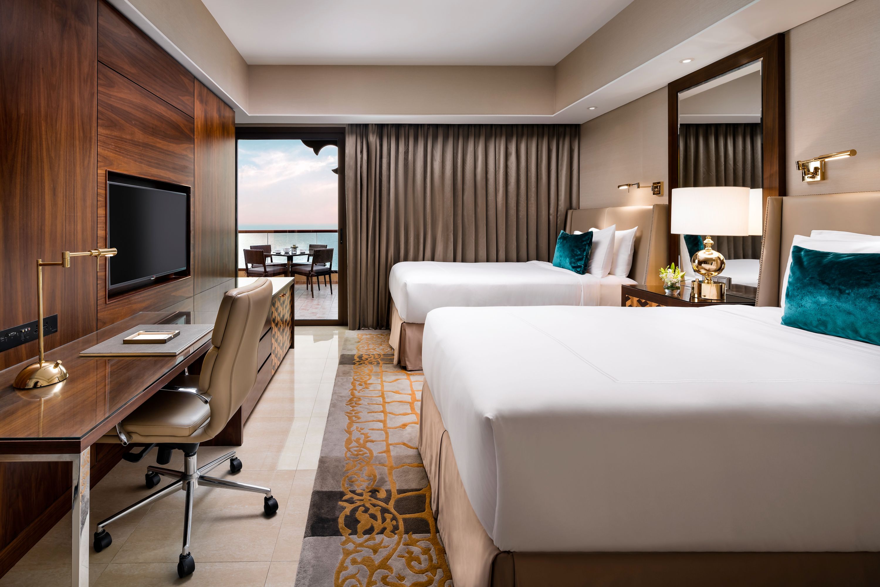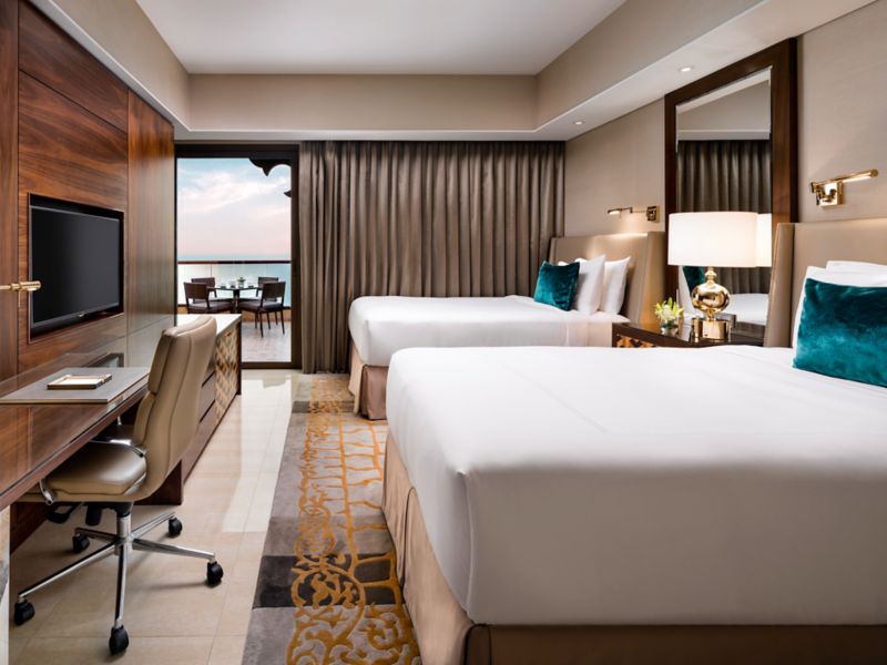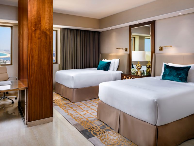 Where comfort meets elegance in Ajman. Relax and unwind in our beautifully appointed rooms and suites, featuring sleek dark-wood accents, chic marble flooring, and soft leather headboards.