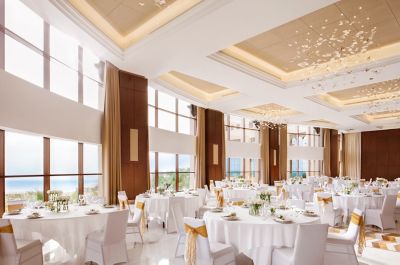 Topaz Ballroom exude unmatched elegance and charm with lavish furnishings and stunning sea views; creating a magical atmosphere for ceremonies and receptions. Whether hosting a grand affair or an intimate celebration, the venue provides an unforgettable backdrop for couples to create lasting memories.