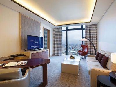 50sqm/538sqft rooms with Caspian Sea view include accessible amenities: handrails in shower, no bathtub, emergency button by the toilet and emergency indicator in bedroom, and lowered peep hole. Exclusive Fairmont Gold lounge access.