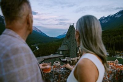 This unforgettable suite features access via private elevator, a reception foyer, spacious entertaining area, bar, powder room and multiple windows. Both bedrooms feature a king bed, window seat and modern bathroom. Located in the pinnacle of a castle peak, The Crown Suite offers magnificent panoramic views.
