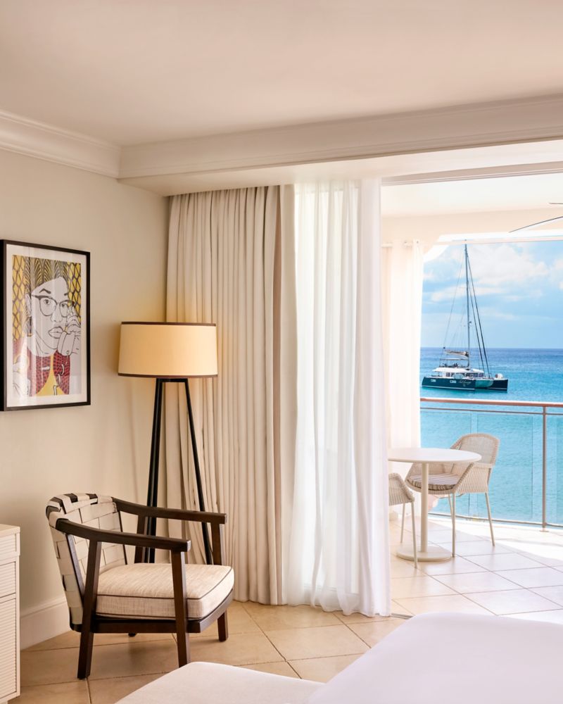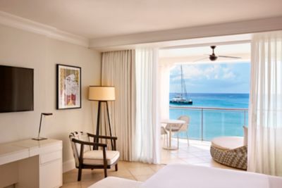 Awake to the soothing sound of waves gently lapping the shore from the comfort of your pillow-top king bed. Located on the second floor, our Luxury Oceanfront Rooms provide a stunning view from a spacious glass-fronted balcony. Elegantly furnished with sun lounger, and a dining table, this serene setting is ideal for sunset cocktails.