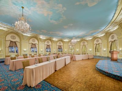 Overlooking Copley Square park is the exquisite Oval Room. The ideal location for a large function, the Oval Room features crystal chandeliers, atrium French doors and hand-carved molding.