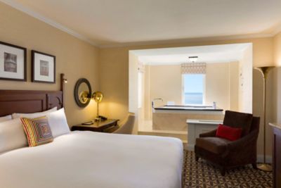 CHECK RATES SEE DETAILSOne King bed, St-Lawrence River view. Spacious suite featuring a parlor area with sofa bed, 42" HDTV, Nespresso coffee maker, Kettle, Mini-bar and snacks. 400SQF/37SQM