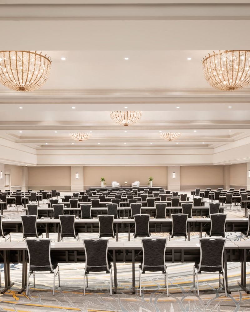 Ideal for mid-sized meetings, meal breaks, or breakout sessions, the Gold Room is located on the 2nd floor with 3,850 square feet of space and a capacity of 320 guests.