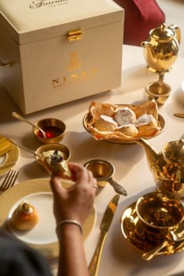 Indulge in a refined selection of delicate pastries, handcrafted sweets and savoury delights. A graceful setting and golden touches create the perfect moment to honour and cherish Mum.