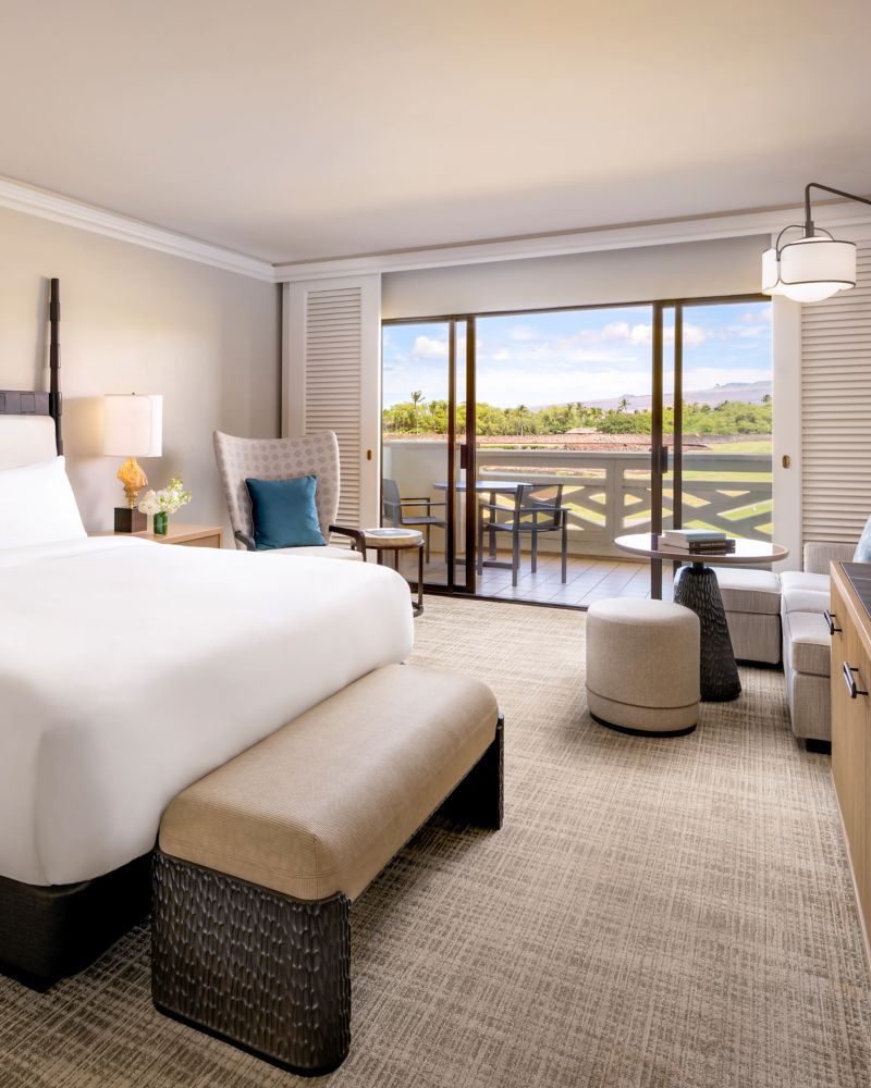 Step into a tranquil Hawaiian oasis with lush garden views. Enjoy a private patio, marble bathroom, WiFi, refrigerator & TV along with Fairmont Gold services such as Private Check-In/Out, Gold Lounge w Comp Cont Bfst, Canapes.
