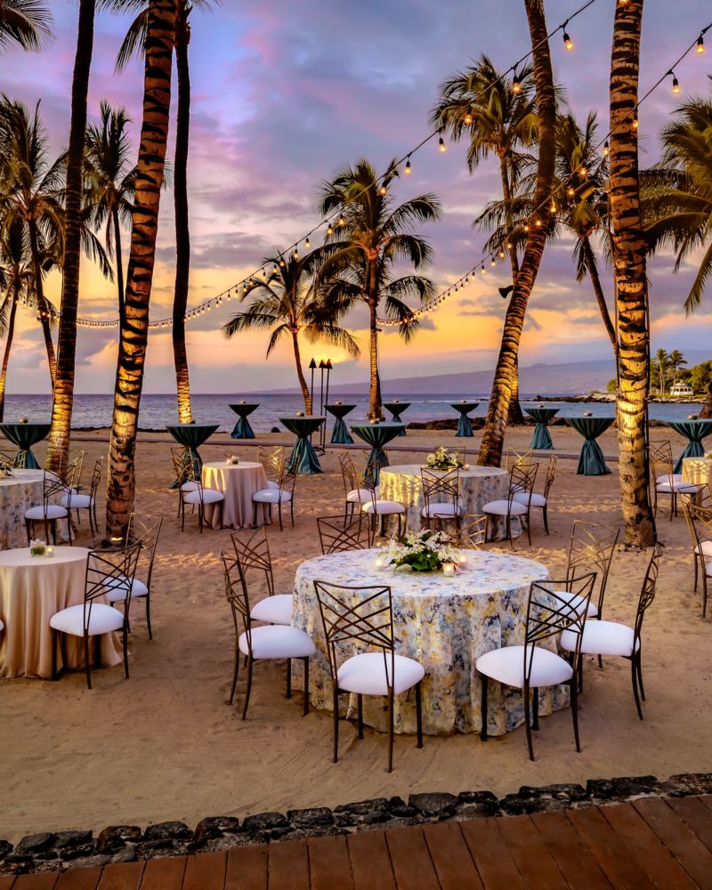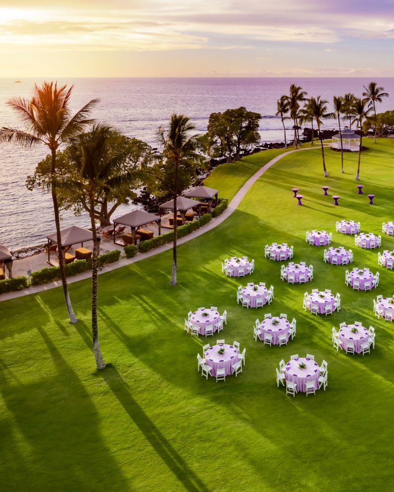Host your event in our sandy coconut grove with towering palms overhead. Perched just above Pauoa Bay and adjacent to the ancient Keanapou fish pond, this site offers panoramic coastal views, swaying palms and glowing tiki torches.