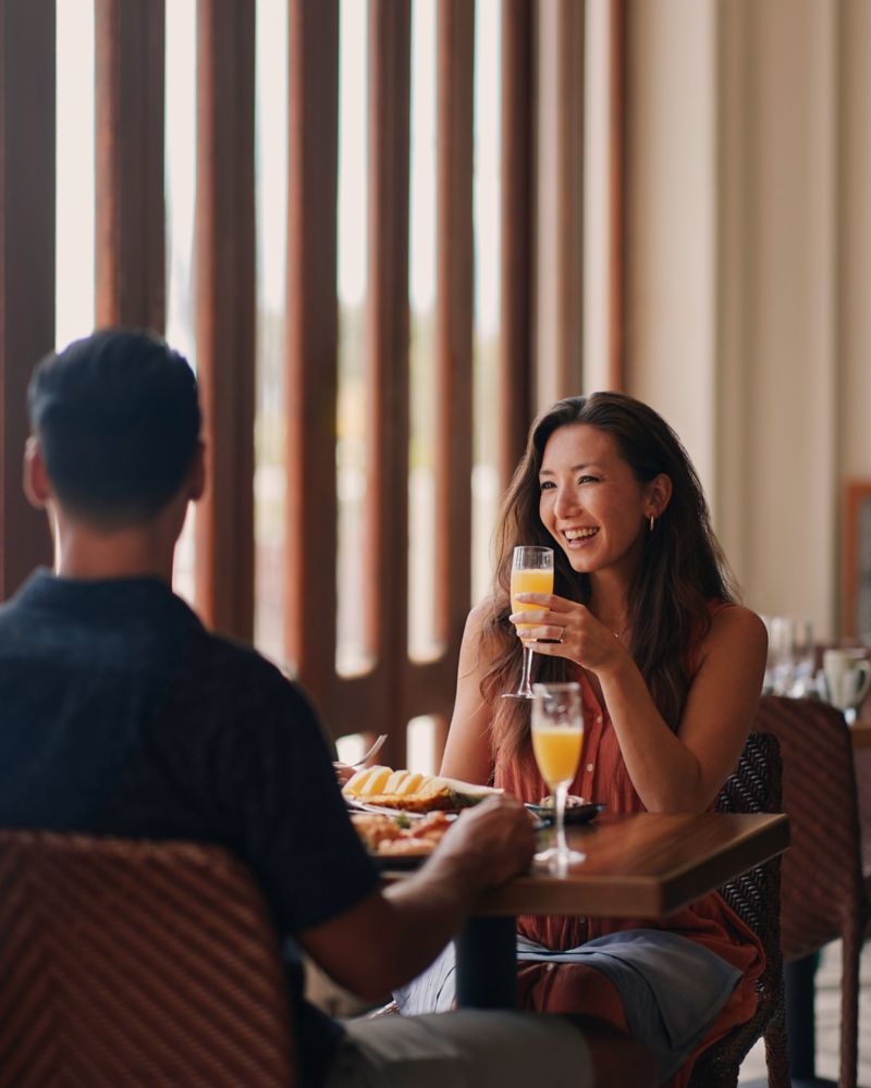 Guests are invited to indulge in a refreshing tropical beverage at our swim-up bar or savor a relaxed lunch on our open-air wraparound lanai, where the spirit of island living meets casual dining.