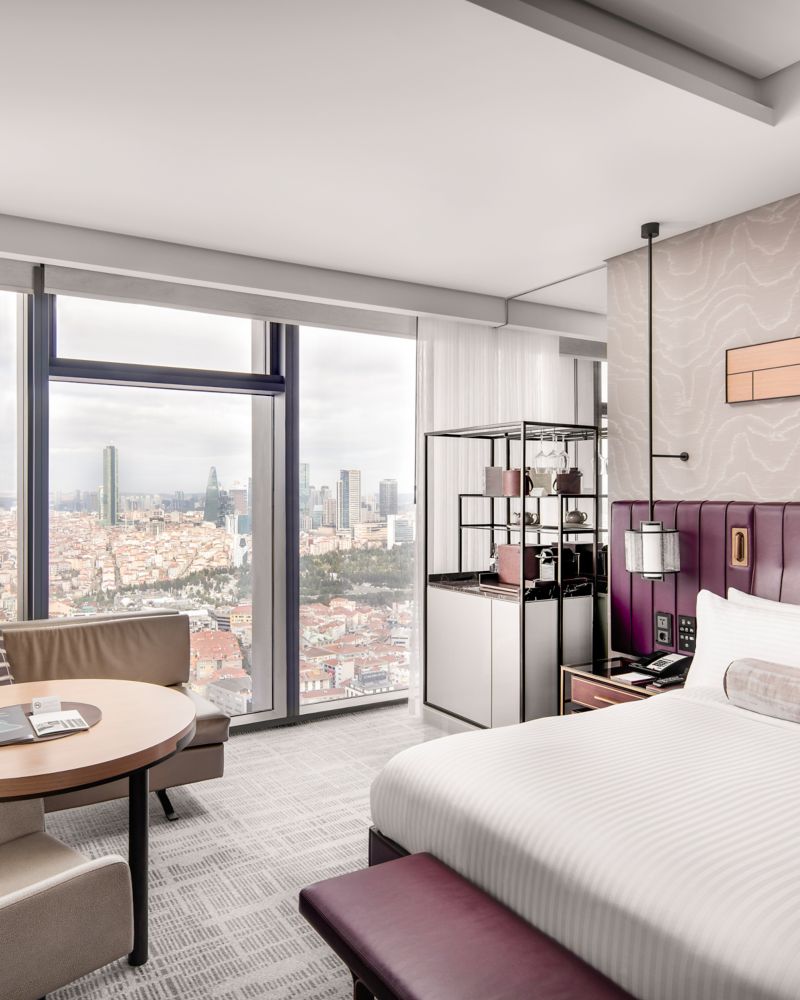 Looking over Istanbul with floor to ceiling windows, this contemporary room offers Gold Lounge access, a rain showers and your choice of bathtub or private Turkish bath, one king bed or two beds, accessible rooms available / 40 m2